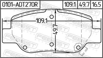 Комплект тормозных колодок, дисковый тормоз 0101ADT270R FEBEST Сторона установки Задний мост , Толщина 16,3 мм, Ширина 109 мм, Высота 49,6 мм, Вес 1,075 кг, Длина упаковки 11 см, Ширина упаковки 9 см, Высота упаковки 5,5 см. Комплект тормозных колодок, дисковый тормоз подходит для TOYOTA (Тойота) AVENSIS седан (_T27_) (Авенсис седан (_т27_)) 2008 - 2018, TOYOTA (Тойота) AVENSIS универсал (_T27_) (Авенсис универсал (_т27_)) 2009 - 2018.
