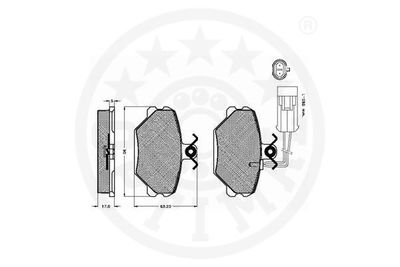 Комплект тормозных колодок, дисковый тормоз 10070 OPTIMAL Сторона установки передний мост , Толщина 17 мм, Ширина 90 мм, Высота 63,2 мм, Тип тормоза Дисковой тормозной механизм , Датчик износа вкл. датчик износа , Тормозная установка Lucas - Girling .