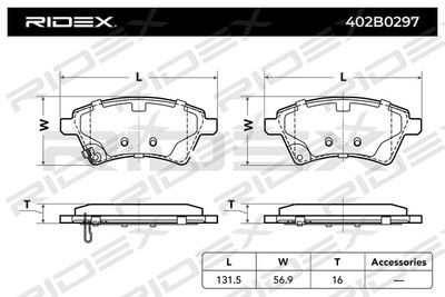 Комплект тормозных колодок, дисковый тормоз 402B0297 RIDEX Ширина 131,5 мм, Высота 56,9 мм, Толщина 16 мм, Датчик износа с звуковым предупреждением износа , Количество датчиков износа 1 на ось, Тормозная установка Lucas , Сторона установки передний мост , Ширина 131,7 мм, WVA номер 24391 . Комплект тормозных колодок, дисковый тормоз подходит для FIAT (Фиат) SEDICI (189_) (Седики (189_)) 2006 - 2014, NISSAN (Ниссан) JUKE (F15) (Жуkе (ф15)) 2010 - 2024, RENAULT (Рено) LATITUDE (L70_) (Латитуде (л70_)) 2010 - 2024, SUZUKI (Сузуки) SX4 (EY, GY) (Сx4 (е, г)) 2006 - 2024, SUZUKI (Сузуки) SX4 седан (GY, RW) (Сx4 седан (г, рw)) 2007 - 2024.