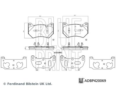 Комплект тормозных колодок, дисковый тормоз ADBP420069 BLUE PRINT Длина 136 мм, Ширина 81 мм, проверочное значение ECE R90 Approved , Сторона установки передний мост , Толщина 1 15,9 мм, Датчик износа подготовлено для датчика износа колодок , Вес 2,291 кг. Комплект тормозных колодок, дисковый тормоз подходит для AUDI (Ауди) Q5 (FYB, FYG) (Q5 (фб, фг)) 2016 - 2024, AUDI (Ауди) Q5 Sportback (FYT) (Q5 спортбакk (фт)) 2020 - 2024.