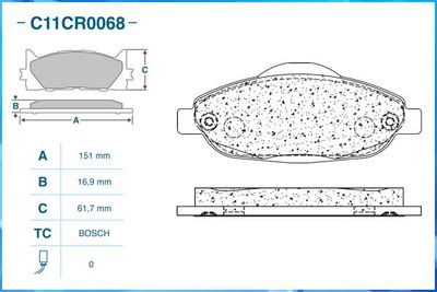 Комплект тормозных колодок, дисковый тормоз C11CR0068 CWORKS Сторона установки передний мост , Толщина 16,9 мм, Ширина 150,8 мм, Высота 61,7 мм, Датчик износа не подготовленно для датчика износа , Тормозная установка BOSCH . Комплект тормозных колодок, дисковый тормоз подходит для PEUGEOT (Пежо) 308 I (4A_, 4C_) (308 и (4а_, 4к_)) 2007 - 2016, PEUGEOT (Пежо) 308 SW I (4E_, 4H_) (308 сw и (4е_, 4х_)) 2007 - 2014, PEUGEOT (Пежо) 308 CC (4B_) (308 кк (4б_)) 2009 - 2015, PEUGEOT (Пежо) 3008 вэн (0U_) (3008 вэн (0у_)) 2009 - 2017, PEUGEOT (Пежо) 5008 (0U_, 0E_) (5008 (0у_, 0е_)) 2009 - 2017, PEUGEOT (Пежо) 408 (408) 2010 - 2024.