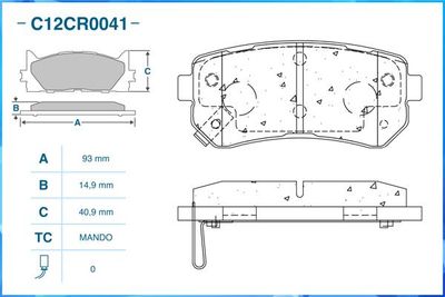 Комплект тормозных колодок, дисковый тормоз C12CR0041 CWORKS Сторона установки Задний мост , Толщина 14,9 мм, Ширина 93 мм, Высота 40,9 мм, Датчик износа не подготовленно для датчика износа , Тормозная установка MANDODO . Комплект тормозных колодок, дисковый тормоз подходит для HYUNDAI (Хендай) SONATA V (NF) (Соната в (нф)) 2004 - 2014, HYUNDAI (Хендай) SONATA VI (YF) (Соната ви (ф)) 2009 - 2015, HYUNDAI (Хендай) ACCENT III (MC) (Аккент иии (мк)) 2005 - 2010, HYUNDAI (Хендай) ACCENT III седан (MC) (Аккент иии седан (мк)) 2005 - 2012, HYUNDAI (Хендай) ix20 (JC) (Иx20 (жк)) 2010 - 2024, HYUNDAI (Хендай) i30 универсал (FD) (И30 универсал (фд)) 2007 - 2012, HYUNDAI (Хендай) i30 (FD) (И30 (фд)) 2007 - 2012, HYUNDAI (Хендай) i30 универсал (GD) (И30 универсал (гд)) 2012 - 2024, HYUNDAI (Хендай) TUCSON (TL, TLE) (Туксон (тл, тле)) 2015 - 2024, HYUNDAI (Хендай) ix35 (LM, EL, ELH) (Иx35 (лм, ел, елх)) 2009 - 2024, HYUNDAI (Хендай) i20 I (PB, PBT) (И20 и (пб, пбт)) 2008 - 2024, KIA (Киа) PICANTO (TA) (Пиканто (та)) 2011 - 2024, KIA (Киа) SPORTAGE III (SL) (Спортаге иии (сл)) 2009 - 2024, KIA (Киа) SPORTAGE II (JE_, KM) (Спортаге ии (же_, kм)) 2004 - 2024, KIA (Киа) SPORTAGE IV (QL, QLE) (Спортаге ив (qл, qле)) 2015 - 2024, KIA (Киа) CERATO III седан (YD) (Керато иии седан (д)) 2012 - 2024, KIA (Киа) CERATO KOUP III (YD) (Керато kоуп иии (д)) 2013 - 2024, KIA (Киа) CERATO II седан (TD) (Керато ии седан (тд)) 2009 - 2024, KIA (Киа) CERATO KOUP II (TD) (Керато kоуп ии (тд)) 2009 - 2024, KIA (Киа) RIO II (JB) (Рио ии (жб)) 2005 - 2024, KIA (Киа) RIO II седан (JB) (Рио ии седан (жб)) 2005 - 2024, KIA (Киа) PRO CEED (ED) (Про кеед (ед)) 2008 - 2013, KIA (Киа) CEED Наклонная задняя часть (ED) (Кеед наклонная задняя часть (ед)) 2006 - 2012, KIA (Киа) CEED SW (ED) (Кеед сw (ед)) 2007 - 2012, KIA (Киа) OPTIMA (JF) (Оптима (жф)) 2015 - 2024.