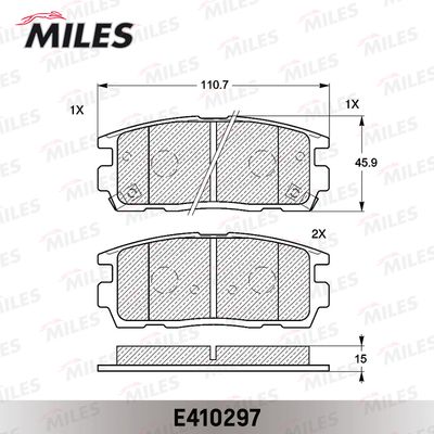 Комплект тормозных колодок, дисковый тормоз E410297 MILES Сторона установки сзади , Материал фрикционной накладки Low-Metallic , Длина 110,7 мм, Ширина 45,9 мм, Толщина 15 мм, Датчик износа с звуковым предупреждением износа , Количество датчиков износа 2 на ось. Комплект тормозных колодок, дисковый тормоз подходит для OPEL (Опель) ANTARA A (L07) (Антара а (л07)) 2006 - 2024, CHEVROLET (Шевроле) CAPTIVA (C100, C140) (Каптива (к100, к140)) 2006 - 2024.