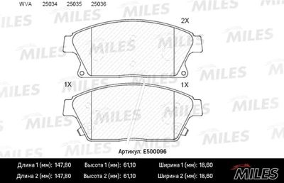Комплект тормозных колодок, дисковый тормоз E500096 MILES Сторона установки спереди , Материал фрикционной накладки Керамика , Длина 147,8 мм, Ширина 61,1 мм, Толщина 18,6 мм. Комплект тормозных колодок, дисковый тормоз подходит для OPEL (Опель) ZAFIRA TOURER C (P12) (Зафира тоурер к (п12)) 2011 - 2024, OPEL (Опель) MOKKA / MOKKA X (J13) (Моkkа / моkkа x (ж13)) 2012 - 2024, OPEL (Опель) ASTRA J (P10) (Астра ж (п10)) 2009 - 2015, OPEL (Опель) ASTRA J седан (Астра ж седан) 2012 - 2024, OPEL (Опель) ASTRA J Sports Tourer (P10) (Астра ж спорц тоурер (п10)) 2010 - 2015, OPEL (Опель) ASTRA J GTC (Астра ж гтк) 2011 - 2024, OPEL (Опель) AMPERA (R12) (Ампера (р12)) 2011 - 2015, CHEVROLET (Шевроле) VOLT (Волт) 2011 - 2024, CHEVROLET (Шевроле) TRAX (Траx) 2012 - 2024, CHEVROLET (Шевроле) CRUZE Наклонная задняя часть (J305) (Крузе наклонная задняя часть (ж305)) 2010 - 2024, CHEVROLET (Шевроле) CRUZE (J300) (Крузе (ж300)) 2009 - 2024, CHEVROLET (Шевроле) CRUZE Station Wagon (J308) (Крузе статион wагон (ж308)) 2012 - 2024, CHEVROLET (Шевроле) ORLANDO (J309) (Орландо (ж309)) 2010 - 2024, CADILLAC (Кадиллак) ATS (Ац) 2013 - 2024, DAIHATSU (Дайхатсу) CHARADE VIII (Чараде виии) 2011 - 2024.
