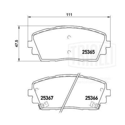 Комплект тормозных колодок, дисковый тормоз PF4247 TRIALLI WVA номер 25365, 25366, 25367 , Сторона установки передний мост , Тормозная установка Mando , Датчик износа с звуковым предупреждением износа , Ширина 110,2 мм, Высота 47,6 мм, Толщина 16,5 мм, Материал фрикционной накладки Low-Metallic . Комплект тормозных колодок, дисковый тормоз подходит для KIA (Киа) PICANTO (TA) (Пиканто (та)) 2011 - 2024.