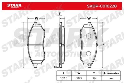 Комплект тормозных колодок, дисковый тормоз SKBP0010228 Stark Ширина 157,3 мм, Высота 58,5 мм, Толщина 16 мм, Датчик износа с звуковым предупреждением износа , Количество датчиков износа 4 на ось, WVA номер 23698 , Тормозная установка Sumitomo , Сторона установки передний мост , выполняет нормы ЕЭК ECE-R90 . Комплект тормозных колодок, дисковый тормоз подходит для NISSAN (Ниссан) 350 Z купе (Z33) (350 з купе (з33)) 2002 - 2009, NISSAN (Ниссан) MURANO I (Z50) (Мурано и (з50)) 2002 - 2009, NISSAN (Ниссан) MURANO II (Z51) (Мурано ии (з51)) 2007 - 2014, NISSAN (Ниссан) PATHFINDER III (R51) (Патхфиндер иии (р51)) 2005 - 2024, NISSAN (Ниссан) PATHFINDER III VAN (R51_) (Патхфиндер иии ван (р51_)) 2005 - 2024, NISSAN (Ниссан) NP300 NAVARA (D40) (Нп300 навара (д40)) 2004 - 2024, NISSAN (Ниссан) NP300 NAVARA c бортовой платформой/ходовая часть (D40) (Нп300 навара к бортовой платформой/ходовая часть (д40)) 2008 - 2024, NISSAN (Ниссан) NP300 NAVARA Пикап (D23) (Нп300 навара пикап (д23)) 2014 - 2024, NISSAN (Ниссан) QASHQAI / QASHQAI +2 I (J10, NJ10, JJ10E) (Qашqаи / qашqаи +2 и (ж10, нж10, жж10е)) 2006 - 2014, RENAULT (Рено) KOLEOS I (HY_) (Kолеос и (х_)) 2008 - 2024, INFINITI (Инфинити) FX (Фx) 2002 - 2008, INFINITI (Инфинити) FX (Фx) 2008 - 2024, INFINITI (Инфинити) Q45 III (F50) (Q45 иии (ф50)) 2001 - 2024, INFINITI (Инфинити) M35 (М35) 2005 - 2024, INFINITI (Инфинити) M45 (М45) 2005 - 2024, INFINITI (Инфинити) EX (Еx) 2007 - 2024, INFINITI (Инфинити) G купе (Г купе) 2007 - 2024, INFINITI (Инфинити) G седан (Г седан) 2002 - 2024, INFINITI (Инфинити) G Кабриолет (Г кабриолет) 2010 - 2024, INFINITI (Инфинити) G седан (Г седан) 2007 - 2024, INFINITI (Инфинити) M (Y51) (М (51)) 2010 - 2024, INFINITI (Инфинити) M37 (М37) 2010 - 2024, INFINITI (Инфинити) Q60 Кабриолет (Q60 кабриолет) 2013 - 2024, INFINITI (Инфинити) QX50 I (Qx50 и) 2013 - 2024, INFINITI (Инфинити) Q70 (Y51) (Q70 (51)) 2013 - 2024.