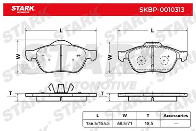 Комплект тормозных колодок, дисковый тормоз SKBP0010313 Stark Ширина 1 155,5 мм, Высота 1 71 мм, Толщина 1 18,5 мм, Ширина 2 156,5 мм, Высота 2 68,5 мм, Толщина 2 18,5 мм, Тормозная установка ATE , Датчик износа без интегрированного датчика износа , Вес 2 кг, Дополнительный артикул / дополнительная информация 2 с поршневым зажимом , Сторона установки передний мост , выполняет нормы ЕЭК ECE-R90 . Комплект тормозных колодок, дисковый тормоз подходит для RENAULT (Рено) LAGUNA II (BG0/1_) (Лагуна ии (бг0/1_)) 2001 - 2007, RENAULT (Рено) LAGUNA II Grandtour (KG0/1_) (Лагуна ии грандтоур (kг0/1_)) 2001 - 2007, RENAULT (Рено) SCÉNIC I вэн (JA0/1_, FA0_) (Сценик и вэн (жа0/1_, фа0_)) 1999 - 2010, RENAULT (Рено) SCÉNIC II (JM0/1_) (Сценик ии (жм0/1_)) 2003 - 2010, RENAULT (Рено) ESPACE IV (JK0/1_) (Эспейс ив (жk0/1_)) 2002 - 2024, RENAULT (Рено) GRAND SCENIC II (JM0/1_) (Гранд скеник ии (жм0/1_)) 2004 - 2009, RENAULT (Рено) VEL SATIS (BJ0_) (Вел сатис (бж0_)) 2002 - 2024.